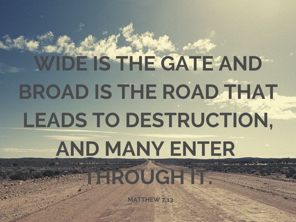 Even as I walk the narrow path, I’m still tempted to join the busy highway. But I’ve already gone down that road to nowhere and I know where that will lead me. It ain’t Love, it’s destruction and death. It ain’t God and it ain’t good, even if it’s wide and well worn.
